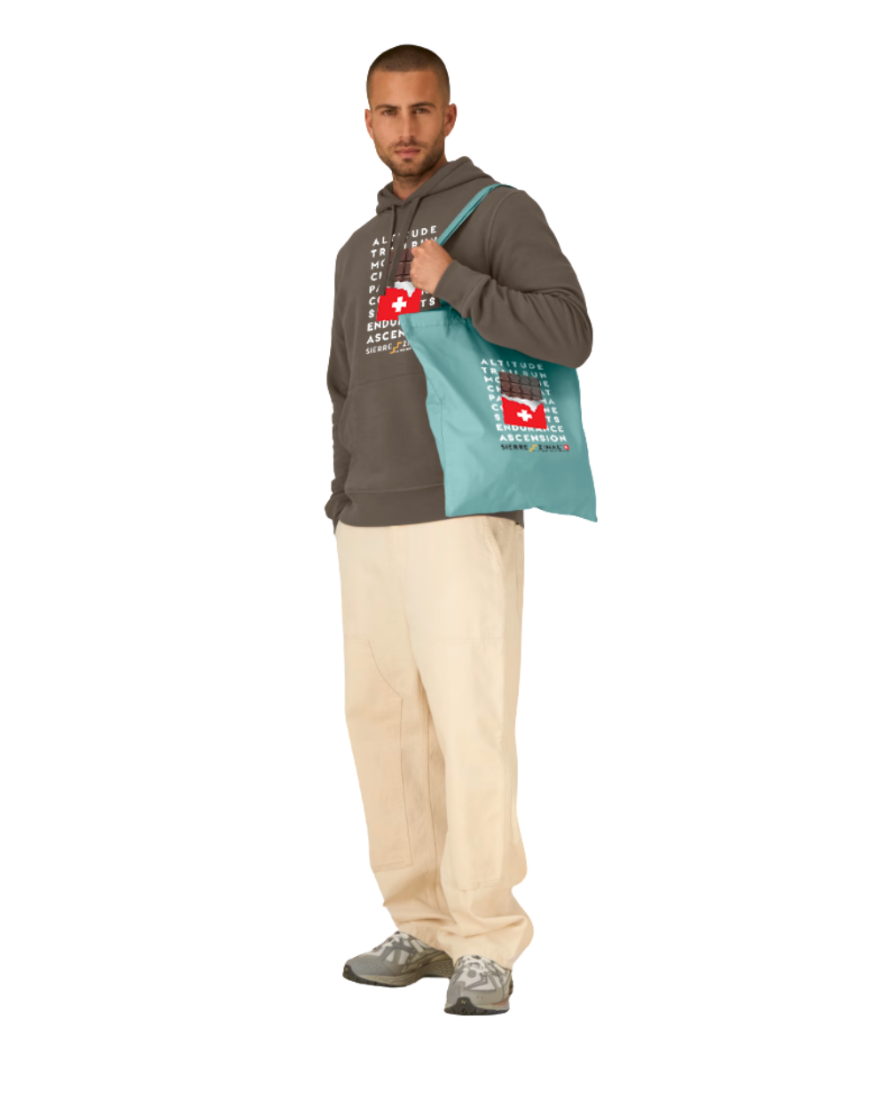 Ce tote bag allie praticité et style avec un design inspiré de l’univers alpin et de l’emblématique course Sierre-Zinal. Son visuel original, mêlant typographie moderne et illustration gourmande, apporte une touche unique et décalée à votre quotidien.